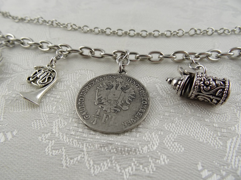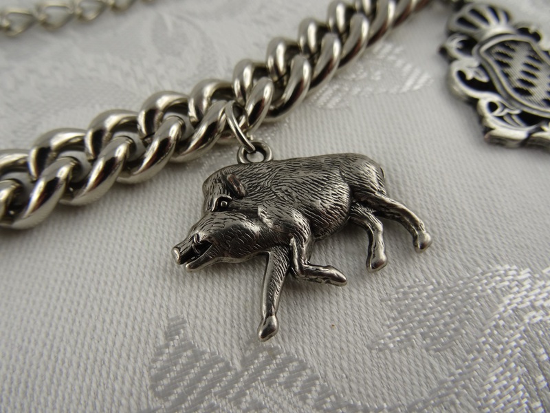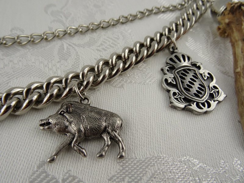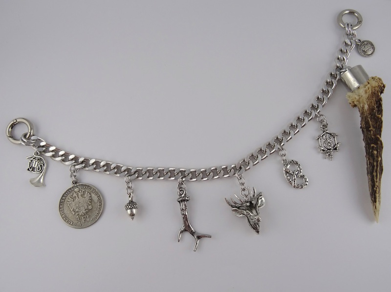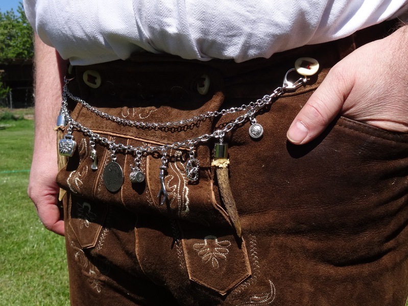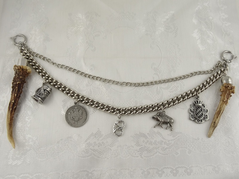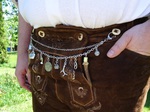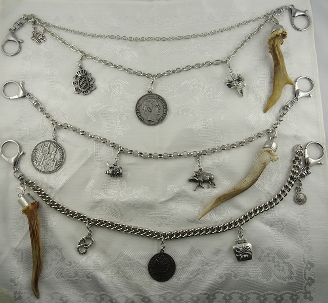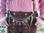 Echte Hornstücke und bayerische Anhänger wie Brez'n oder Maßkrug machen diese Charivaris zu echten Hinguckern. Je nach Größe und Art der Lederhose, muss jedes Charivari individuell angepasst werden. Aber kein Problem, meldet Euch einfach bei mir.