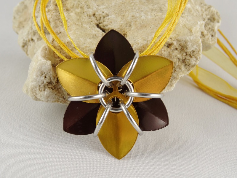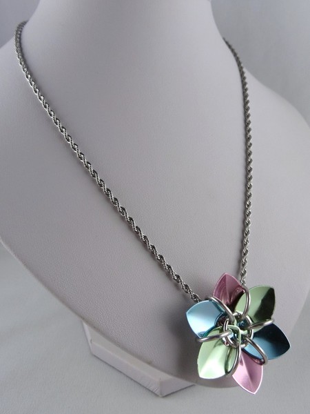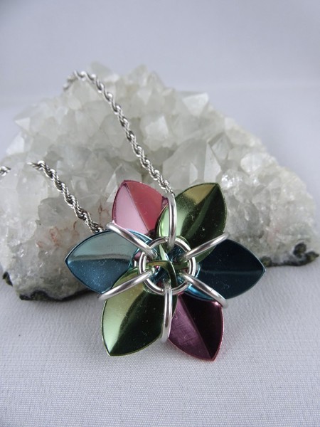 Blüte aus 6 feinen Aluminiumplättchen mit vielen Farbmöglichkeiten (einfarbig, zweifarbig, dreifarbig oder sogar sechs verschiedene Farben)