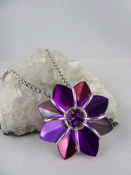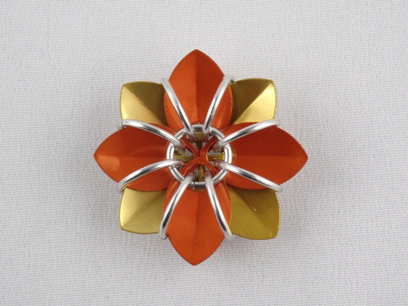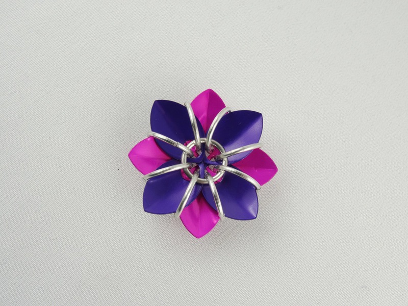 Blüte aus 8 feinen Aluminiumplättchen mit vielen Farbmöglichkeiten (einfarbig, zweifarbig, vierfarbig oder sogar acht verschiedene Farben)