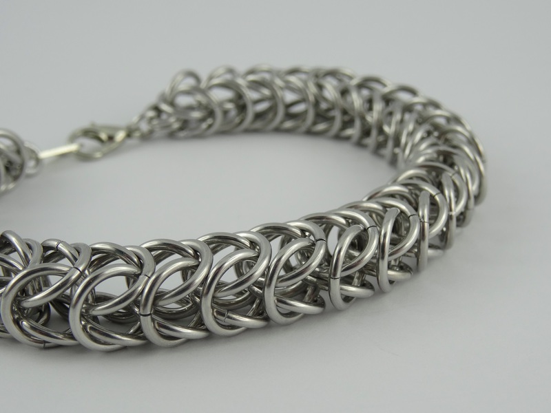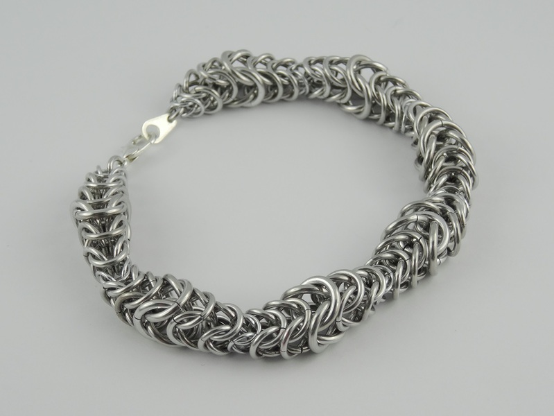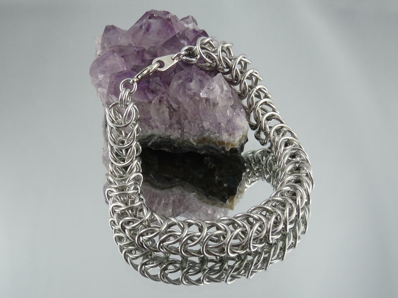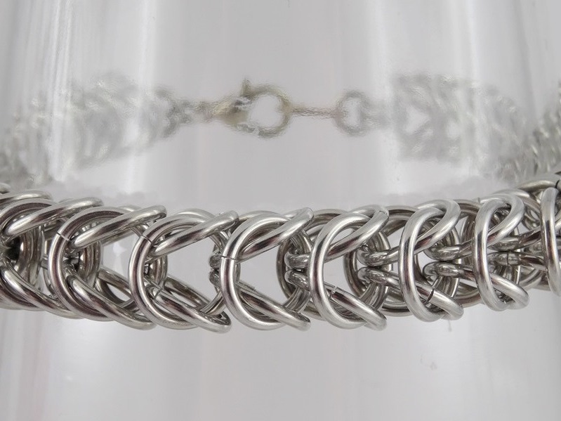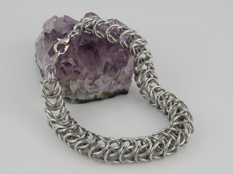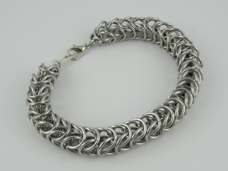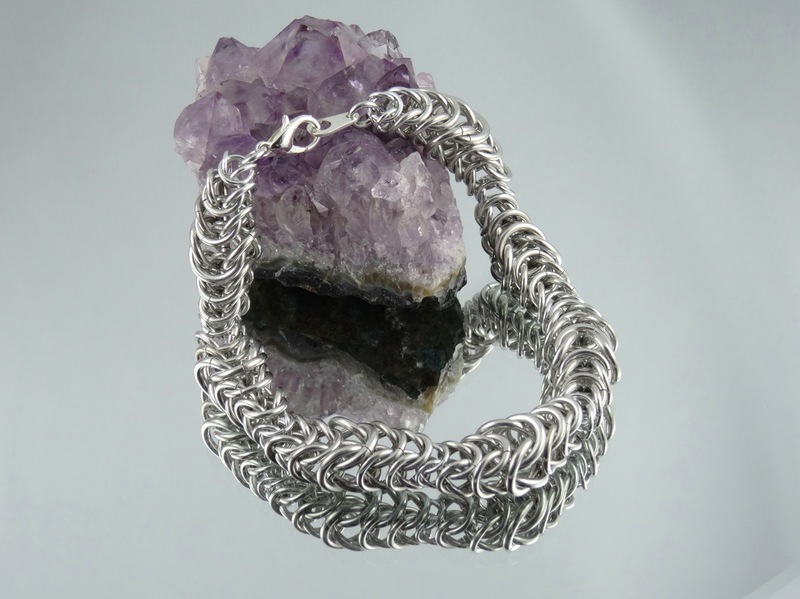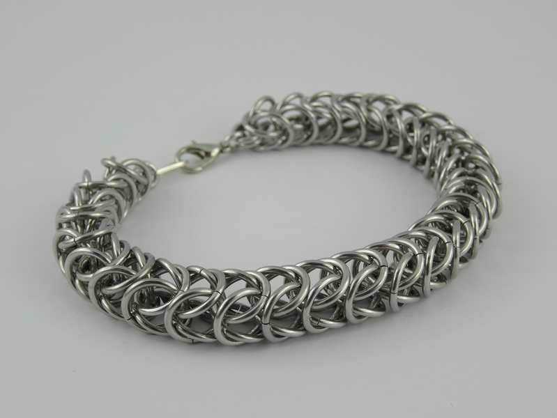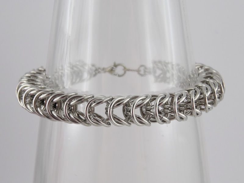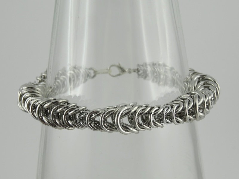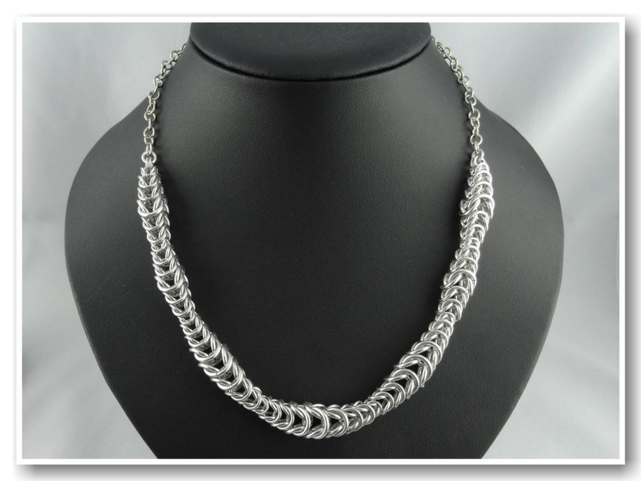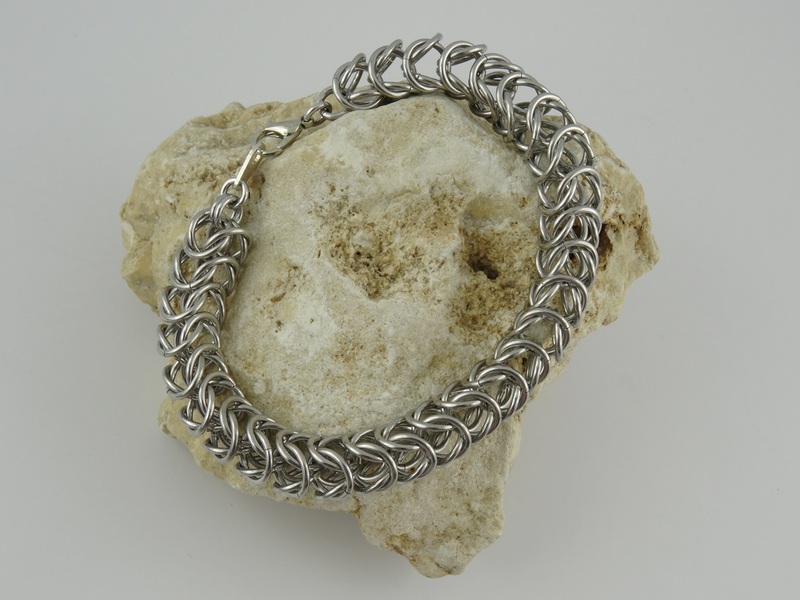Boxchain ist ein europäisches Muster und sehr ähnlich zum Byzantine. Veränderungen der Drahtstärke und Ringgröße ergeben die unterschiedlichsten Looks.