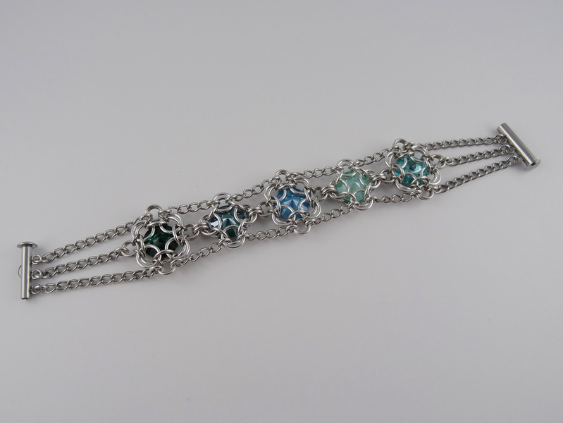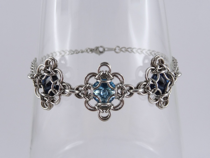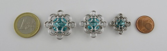 Bisher sind 3 Größen entstanden, die aneinander gereiht oder in Kombination mit anderen Mustern schöne Armbänder ergeben.