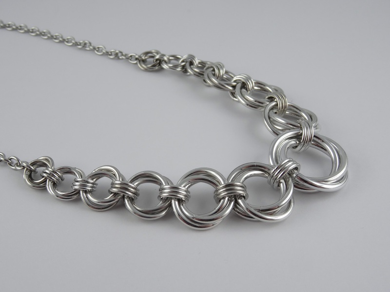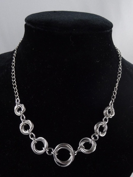 Mit Moebius ist eigentlich gemeint, dass mehrere Ringe ineinander gearbeitet werden, deshalb gehört er auch zu den spiralförmigen Kettengeflechten.