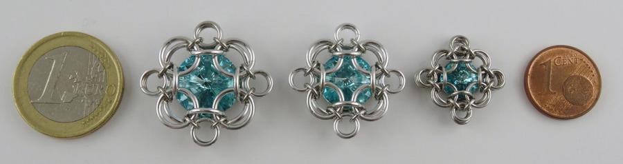 Bisher sind 3 Größen entstanden, die in Kombination mit anderen Mustern schöne Ketten ergeben.