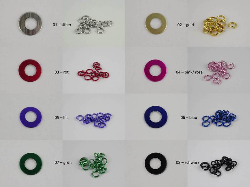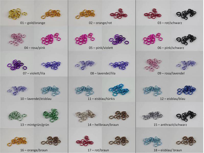 Es gibt so viele verschiedene Farben an Ringen und Zubehör. Zumal es bei der Ringherstellung von einem zum nächsten Mal wieder etwas andere Farbtöne geben kann.